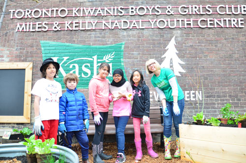 The launch event was held May 15 at the Toronto Kiwanis Boys & Girls Club where a brand new community garden was created overtop of an old parking lot. I spoke on behalf of Kashi Canada and helped the kids plant one of the gardens.